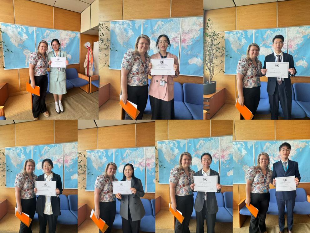 聯(lián)合國(guó)口譯司Marianna女士為同學(xué)們頒發(fā)實(shí)習(xí)證書