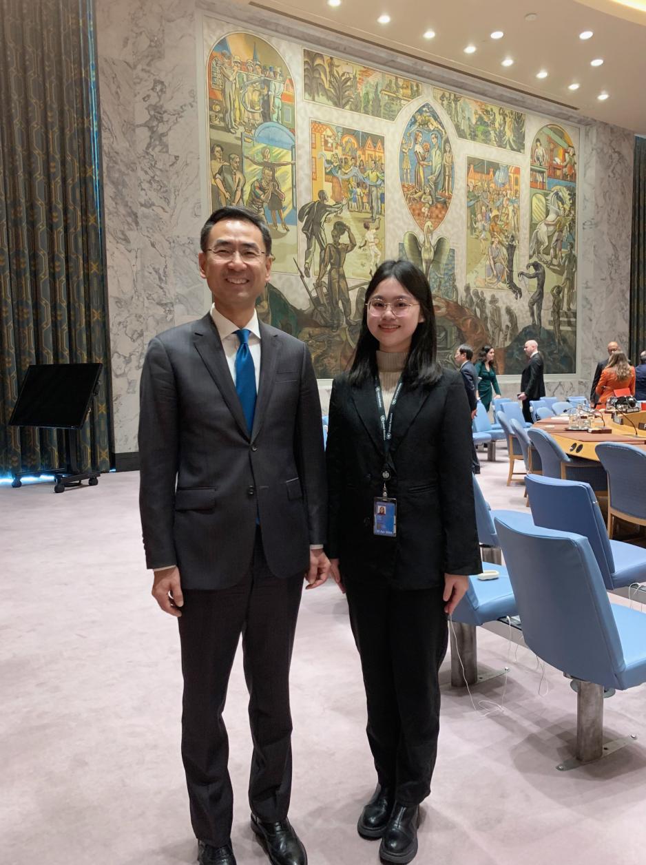 在新聞學院的中外新聞發言人與新聞發布實務這門課上,曹詠儀的期末作業是分析外交部發言人賬號的高贊視頻,她對耿爽大使卸任外交部發言人的告別視頻印象最為深刻,發言中的最后一句話是“在此跟大家道別,我們后會有期”。曹詠儀從未想過,在聯合國實習期間,她真的能與耿爽大使“后會有期”,并獲得了一次與耿爽大使交流的寶貴機會。“本科生能來聯合國實習不容易,希望以后還能夠在大樓里見到你。”在交流的最后,耿爽大使親切地勉勵她,希望與她后會有期。這樣一番話語使曹詠儀備受感動,也成了她職業發展的一大動力,讓她更加堅定了自己日后將繼續在聯合國這個國際平臺發光發熱的愿望。