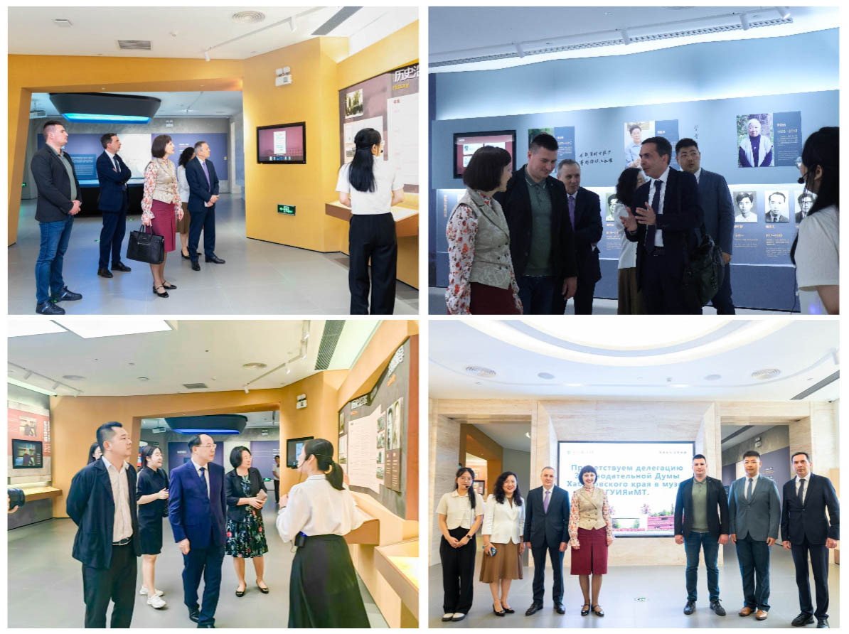 會見后,來訪團一行前往校史館參觀。我校西語學院學生用俄語向外賓介紹學校歷史。