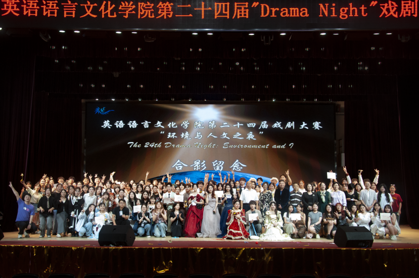 本網訊 5月23日晚,英語語言文化學院第24屆“Drama Night”英語戲劇大賽“環境與人文之夜”在白云山校區云山會堂落幕。兩個半小時的演出扣人心弦、精彩紛呈,《馬戲團之夜》《希阿娜》《弗緹利斯》《人鼠之間》劇目引人入勝。各組以“環境與人文”為主題,通過深度的思考、大膽的創想、生動的表演、團隊完美的配合,將主題融入劇情之中,立足自然、自我、社會等角度,將不同環境對人的塑造和影響演繹得淋漓盡致,帶領觀眾開啟一場“環境與我”的探索之旅。