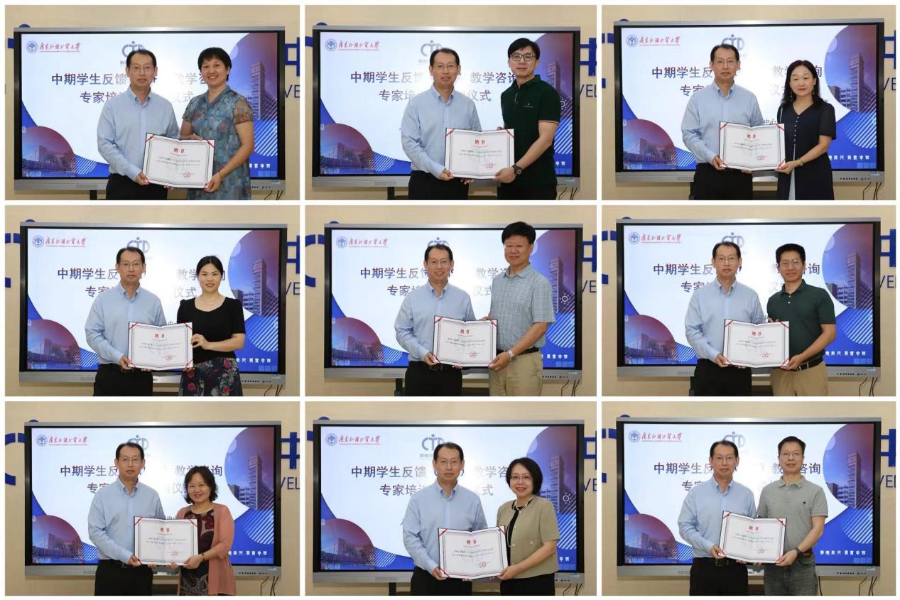 申明浩指出,希望各位專家能夠繼續發揚廣外人奮楫爭先,履踐致遠的精神,在這次培訓中有所領悟,為學校教師教學質量提升工作提供更多的指導和支持,讓廣外在聚焦高質量發展進程中比學趕超,在趕超中突破,涌現出更多的“金專”、“金師”、“金課”。他為參訓專家們頒發教學咨詢專家聘書。