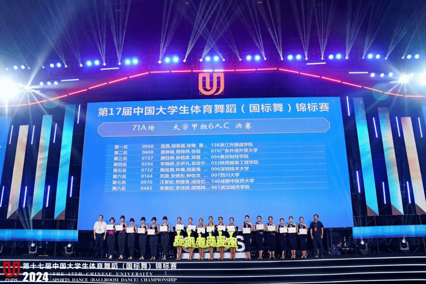 本網(wǎng)訊 5月27日至5月30日,第17屆全國(guó)大學(xué)生體育舞蹈錦標(biāo)賽在四川省綿陽(yáng)市九洲體育館圓滿舉行。我校體育舞蹈隊(duì)共派出8名運(yùn)動(dòng)員參賽,取得大學(xué)甲組團(tuán)體總分第四名的佳績(jī)。