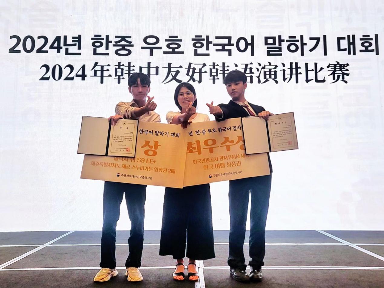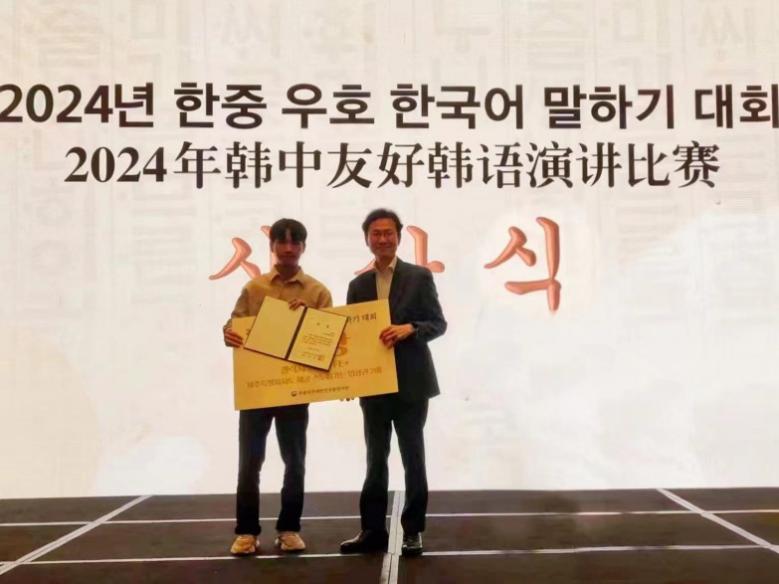 本網訊 6月1日,2024年韓中友好韓語演講比賽決賽在廣州舉行。本次比賽由大韓民國駐廣州總領事館主辦、韓國旅游發展局廣州辦事處協辦。我校亞非學院派出的兩位參賽選手莊偉帆、曾家寶分別榮獲大獎(一等獎)和最優秀獎(二等獎)。