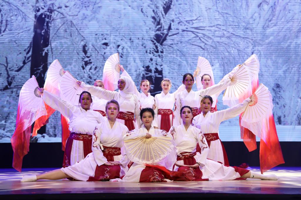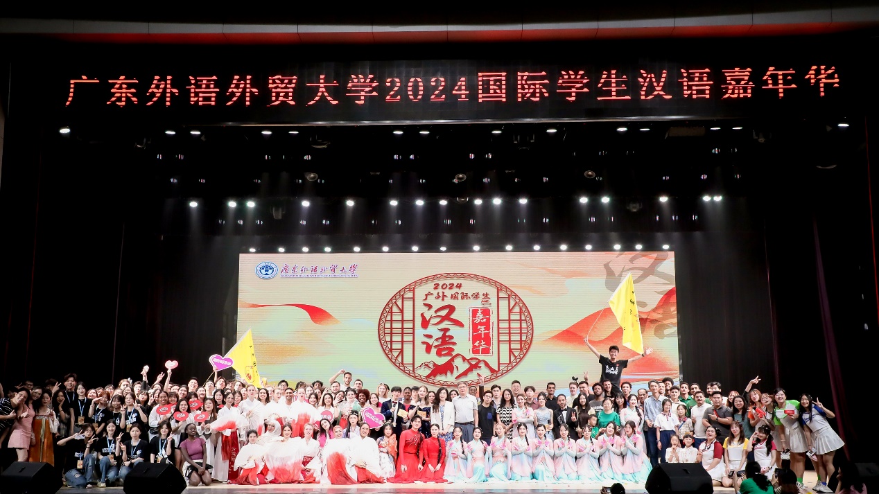 中外學生帶來歌曲串燒《愛來自廣外》,唱出各國學子學在廣外,愛在廣外的故事。用一曲《剛好遇見你》道出跨越山海的友誼,漢語讓我們遇見彼此。端莊的馬面裙、搖曳的襦裙,身著漢服的留學生多語種朗誦《水調歌頭·明月幾時有》,聲音匯聚成溫暖的河流,穿越時空的隔閡,將共通的情誼傳遞給遠方的親人和朋友。《左手指月》扇子舞中,一把把扇子在舞者手中變幻無窮,將中國古典文化的深厚底蘊表現得淋漓盡致。漢語言2022級的同學們現場配音——《校園生活》,“點外賣”、“取快遞”等貼近生活的內容引得現場笑聲不斷。