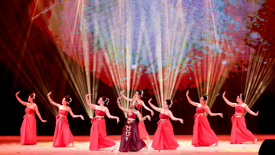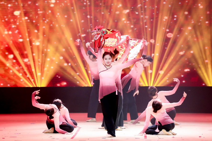 暨南大學華文學院的學生們受邀參加此次活動,帶來了熱情洋溢的泰國舞蹈。武協成員武術表演《廣袤鑄武魂,武韻貫乾坤》,柔中寓剛、氣吞山河,一顯“國粹”武術的颯爽英姿。華南師范大學的留學生舞蹈表演《卜卦》,模擬著卦象的變化,以及古人對日月星辰運行規律的觀察與崇拜。校舞隊帶來舞蹈《龍舞山河》,燈光下,金色的龍身在舞動中蜿蜒起伏,展現出龍騰盛世的磅礴氣勢。