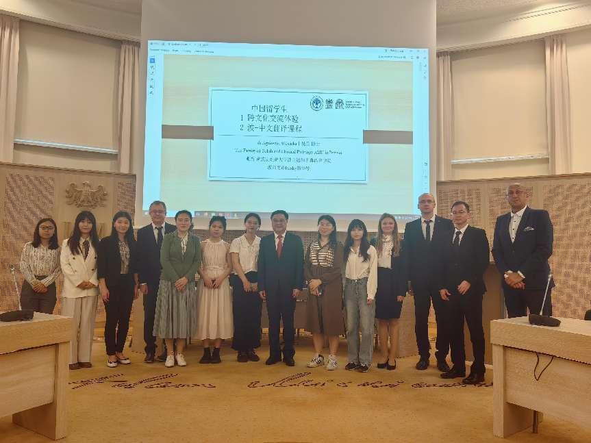 在華沙期間,石佑啟拜會了中國駐波蘭大使館公使銜參贊李丹鴻、文化參贊易軍等。李丹鴻表示,中國波蘭兩國元首剛剛會晤不久,并達成了下一步的合作共識,為兩國各領域開展合作提供了遵循。教育交流是兩國交流交往的重要組成部分,有利于推動兩國人民特別是青年朋友們的相互了解。廣外作為國內知名的語言類大學,在波蘭語建設及推動與波蘭交流合作方面取得良好成績。她希望廣外繼續發揮自身優勢,與波蘭的高校開展更多項目合作,使館也樂意提供相應支持。石佑啟對李丹鴻一行的熱情接待表示感謝,并介紹了學校的有關情況。我校波蘭語專業成立于 2013 年,是全國第三家、華南地區第一家獲得教育部批準的波蘭語本科專業教學點,也是首批國家級一流專業建設點,培養了一批優秀的師資和學生。他表示,學校將大力實施教育國際化PRIME計劃,積極推進與包括波蘭在內的中東歐國家的交流,服務好國家高水平對外開放事業,也希望使館給予學校更多的指導與支持。