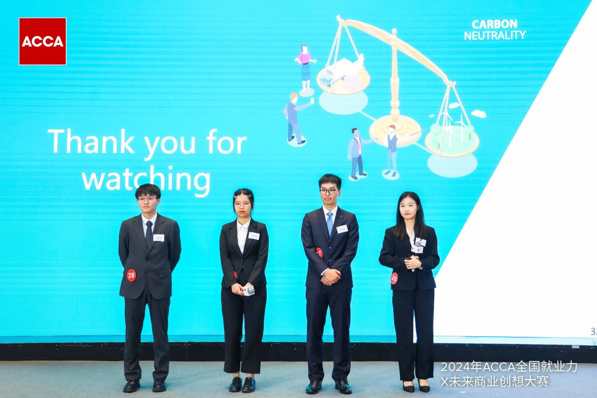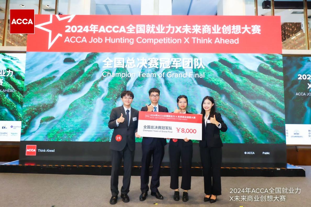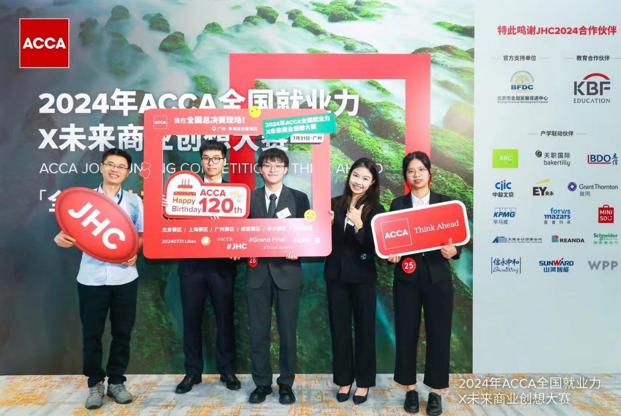 本網訊 7月31日,2024年ACCA全國就業力x未來商業創想大賽全國總決賽在廣州落下帷幕。經過初賽(財會基礎雙語測評)、復賽(ESG案例淺析)、線下華南地區區域決賽(團隊全英展示答辯)和全國總決賽的案例分析展示等四輪角逐,會計學院ACCA方向班的聶雋逸、何睿熹、梁文昊、楊明浚同學組成的Witty隊伍在全國逾萬名參賽選手中脫穎而出,奪得全國總冠軍,這是繼2022年ACCA全國就業力x未來商業創想大賽全國總冠軍后,再次獲此殊榮。