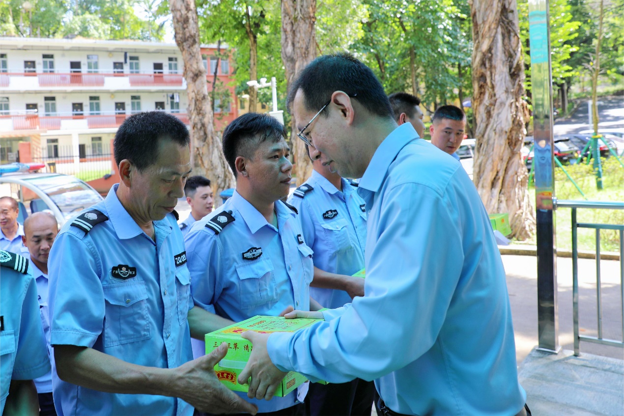 申明浩詳細詢問工作狀況,叮囑他們做好本職工作的同時,要注意身體健康,做好防暑降溫措施,并送上清涼慰問品。