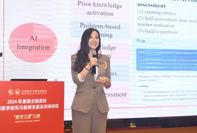 此次比賽以“外語教材的有效使用:數(shù)智融合,創(chuàng)新育人”為主題,吸引了來自全國(guó)149所高校的教學(xué)團(tuán)隊(duì)參賽,參賽人數(shù)再創(chuàng)新高。經(jīng)過初賽、復(fù)賽的激烈角逐,最終24所高校隊(duì)伍約120名選手晉級(jí)全國(guó)賽。在近4個(gè)月的備賽過程中,我校英語語言文化學(xué)院高度重視,協(xié)助參賽教師緊扣大賽主題,結(jié)合我校課程體系、專業(yè)設(shè)置和學(xué)情訴求,不斷打磨教學(xué)方法。參賽團(tuán)隊(duì)圍繞數(shù)智賦能的教學(xué)模式進(jìn)行深入探討,最終形成以數(shù)智技術(shù)為核心的教學(xué)設(shè)計(jì)方案,將思政元素有機(jī)融入課程內(nèi)容,培養(yǎng)學(xué)生的跨文化交際能力。