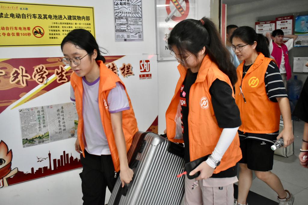 早在上午七點多,迎新現場的志愿者們已全部到崗。他們認真地為新生及家長指引道路、搬運行李、答疑解惑,并且幫助新生們進行手續辦理等工作。日語學院國同學是一名志愿者,“對于我來說,作為一名迎新志愿者可以幫助到大家,我覺得很開心。同時,我也想趁這個機會開闊視野、鍛煉能力。”馬克思主義學院的李同學感嘆在見證新生入學的同時更見證了自己的成長。談到參與迎新志愿者工作的初衷時,英文學院的楊同學說:“因為自己大一新生報到的時候得到了學姐學長們的幫助,希望可以讓這一屆的新生‘小餅’對廣外有非常溫暖的開學記憶,這是作為一名廣外人的傳承,是內心責任感和使命感的傳遞。”