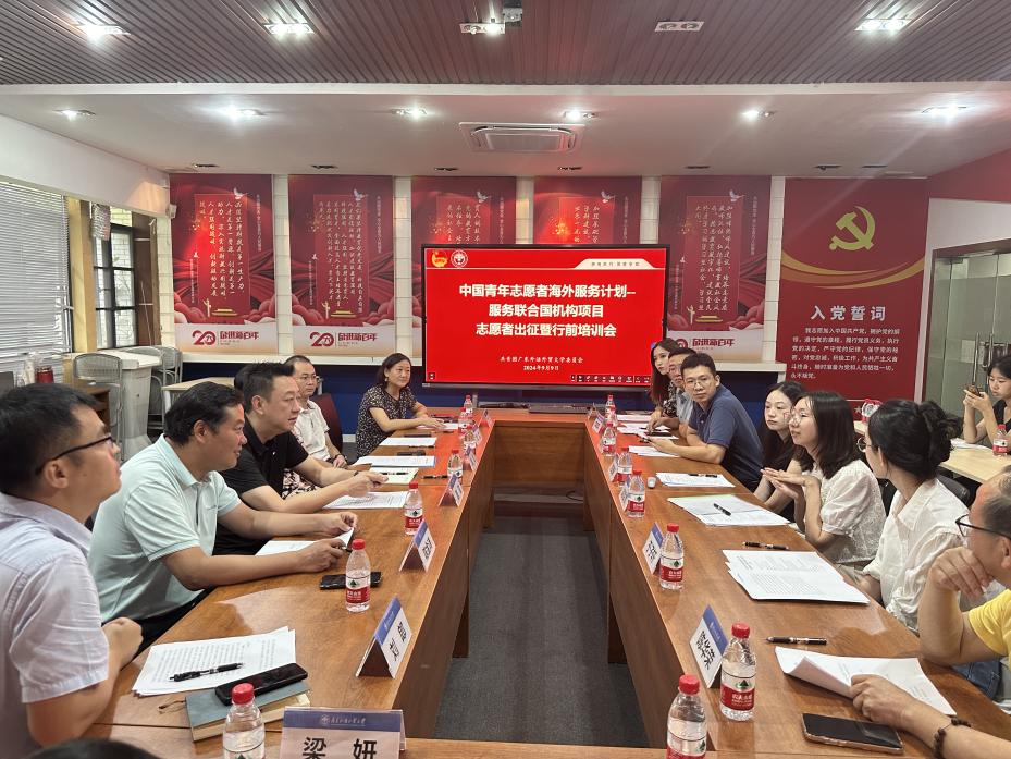 本網訊 9月11日上午,我校第二批中國青年志愿者海外服務計劃-服務聯合國機構項目志愿者出征暨行前培訓會于白云山校區舉行,校黨委副書記唐銳、相關部處、學院負責同志出席會議。