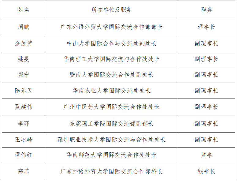 外專委第五屆理事會理事長代表王昱、秘書長郭寧、監事譚偉紅分別總結匯報第五屆理事會過去五年的工作成果、財務收支情況以及對理事會工作的監督情況。會議審議表決通過了上述事項的工作報告,表決通過了《廣東省高等教育學會高校外國文教專家工作委員會管理制度(修訂草案)》以及第六屆理事會候選理事單位、理事長、副理事長、監事、秘書長候選人。我校國際交流合作部部長周鵬當選為外專委第六屆理事會理事長、國際交流合作部外專科科長高菲當選為外專委第六屆理事會秘書長。