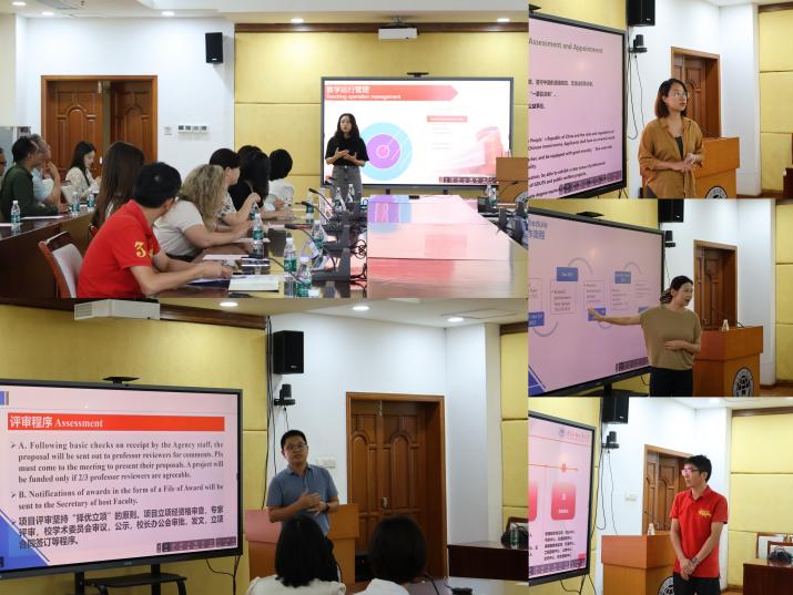 會議還邀請了各職能部門代表就教學、科研、職稱評定及后勤服務等外教關心的問題進行了情況介紹和工作指引。教務部白歌樂老師圍繞教學計劃、教學運行和教研管理三方面,介紹了大學教學管理相關要求和規定。科研部駱澤深、何靜老師在會上分別介紹了各類科研項目申報和支持政策;人力資源部陳鈺杭老師就外籍教師職稱評審條件、申報流程等情況做了說明,總務后勤部的馬黨飛老師則圍繞大學后勤保障情況和外教后勤服務進行了詳細介紹。