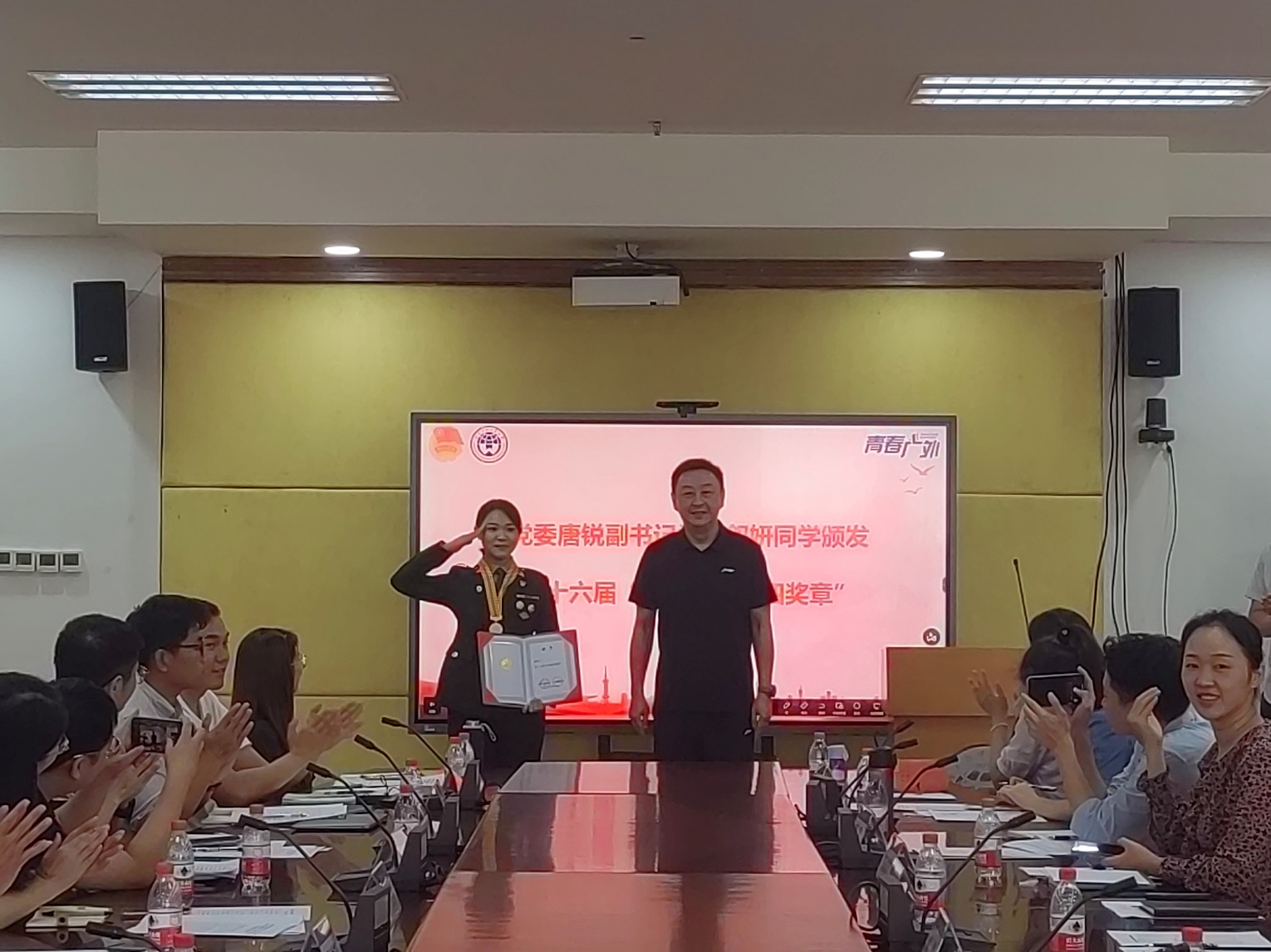 唐銳為胡敘妍同學(xué)頒發(fā)第二十六屆“廣東青年五四獎(jiǎng)?wù)隆?/strong>
