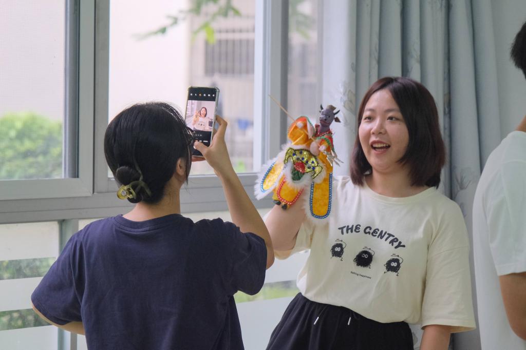 與此同時,一陣陣悠揚婉轉的戲腔回蕩在空中,那是偶具匠心團隊正為同學們傾情演繹經典曲目。教室內,學生們與木偶互動頻繁,團隊成員幽默風趣的講解更是讓現(xiàn)場充滿了歡聲笑語。行政管理專業(yè)的代同學感慨道,自幼喜愛木偶戲的她在此次活動中找到了歸屬感?!爱斘覈L試自己操縱木偶時,我的手指就好像在互相打架。”通過親身體驗,她深刻領悟到了這一藝術的精妙與不易。在活動現(xiàn)場,眾多同學對本次非遺體驗活動反響熱烈,并希望學校未來能繼續(xù)舉辦更多類似活動,為他們提供更多親身感受傳統(tǒng)文化魅力的機會。