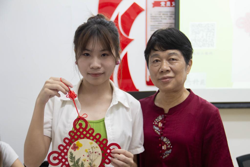 “這個同學做的跟我剛剛教的完全不一樣,”陣陣笑聲從傅慶軍老師的押花課堂中傳出,“很好,有想法就很好!”植物花卉經過脫水、壓制等工序,在同學們的巧手下被制作成精美的裝飾素材,彰顯出每個人天馬行空的想象力。親手制作出押花中國結后,來自財政學的王同學深有感悟?!耙院罂吹降厣系幕?,可能會有意識地保留下來。”她說。押花這項技藝在創(chuàng)新中不斷發(fā)展,用傅慶軍老師的話說則是“讓快要凋零的花重生”,在這個過程中,“你的創(chuàng)意思維、你的想象力、你的好奇心,都可以得到拓展”。