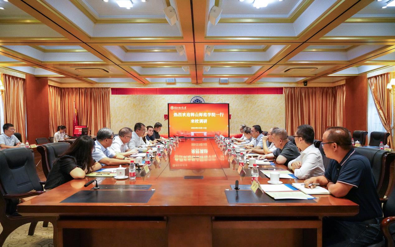 本網訊 10月14日下午,韓山師范學院校長劉海春一行來我校交流。我校校長閆相斌,紀委書記、省監委駐學校監察專員溫燕歡出席座談會,雙方就黨政辦公室綜合管理、國際交流、對外合作與校友聯絡等方面展開交流。