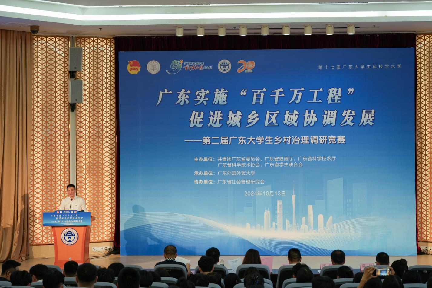 涂斌代表組委會(huì)介紹競(jìng)賽的開(kāi)展情況,并表示廣大青年學(xué)子勇于探索、敢于創(chuàng)新,對(duì)鄉(xiāng)村治理提出可行性的建議,以青年智慧和青春力量譜寫(xiě)鄉(xiāng)村振興新篇章,助推建設(shè)發(fā)展新質(zhì)生產(chǎn)力重要陣地,奮力推動(dòng)廣東高質(zhì)量發(fā)展。華南師范大學(xué)和我校的兩支獲獎(jiǎng)隊(duì)伍代表現(xiàn)場(chǎng)分享當(dāng)代青年對(duì)鄉(xiāng)村治理實(shí)踐的深入思考和獨(dú)到見(jiàn)解。