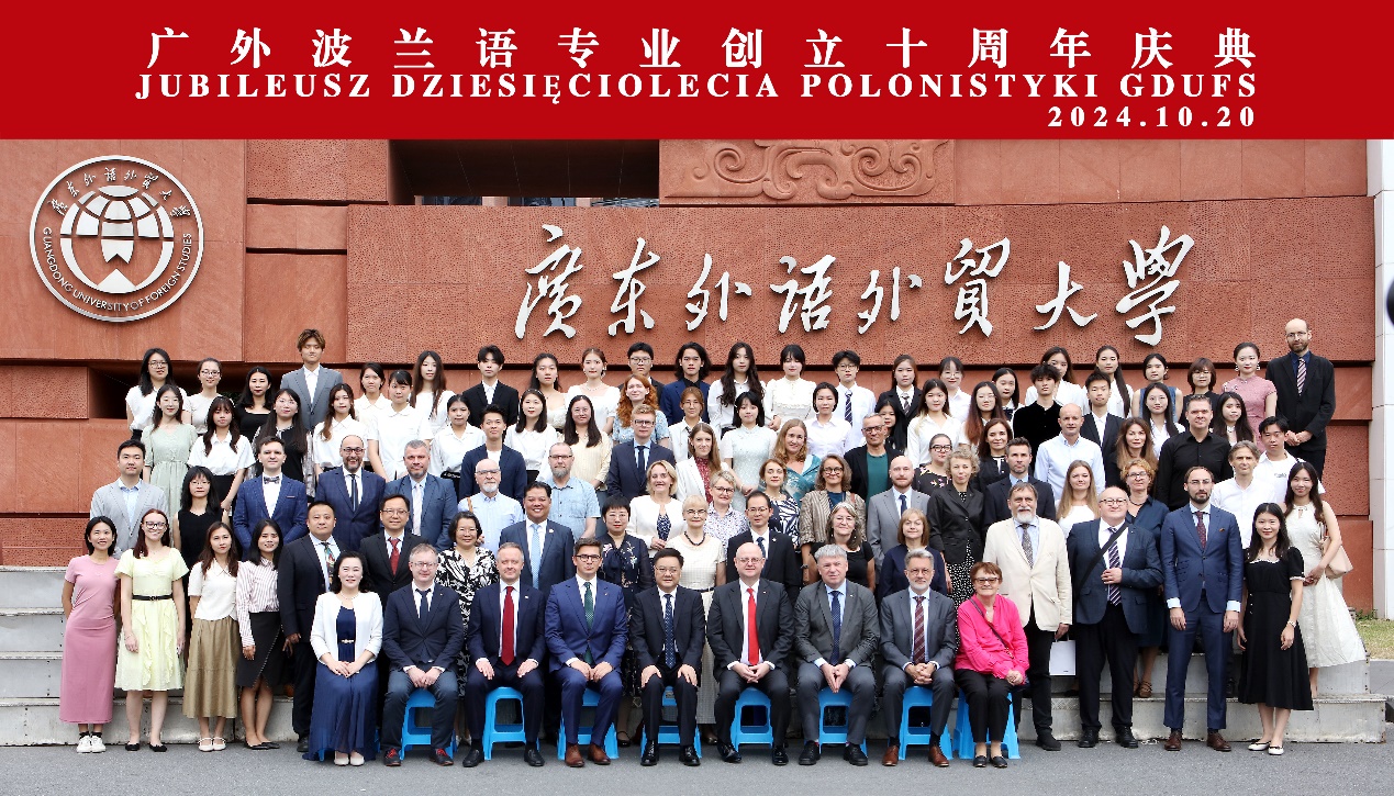 本網訊 10月20日上午,廣外波蘭語專業創立十周年慶典于白云山校區行政樓國際會議廳舉辦。校黨委書記石佑啟、波蘭共和國駐廣州總領事彼得·諾沃特尼亞克(Piotr Nowotniak)、波蘭教育部國家高等教育中心、華沙大學、密茨凱維奇大學、雅蓋隆大學、什切青大學、西里西亞大學、哥白尼大學等六所大學及機構五十余位校長與教授、廣外波蘭語系全體師生、畢業校友等近百人人參與了活動。