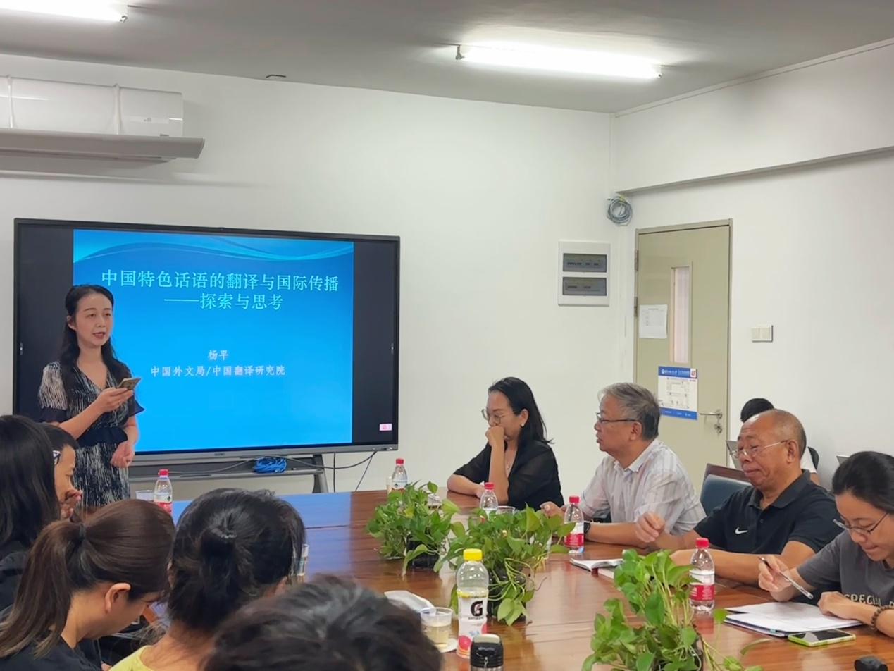 潘莉用“融”、“跨”、“立”概括了此次講座的內容。她在總結時指出,楊平的講授深入淺出,對中國特色話語的翻譯與國際傳播這個主題的闡釋分析既全面又有高度。她表示,她開設的國家話語翻譯、時政翻譯等課程是受益于中國翻譯研究院及楊平教授團隊的項目成果。
