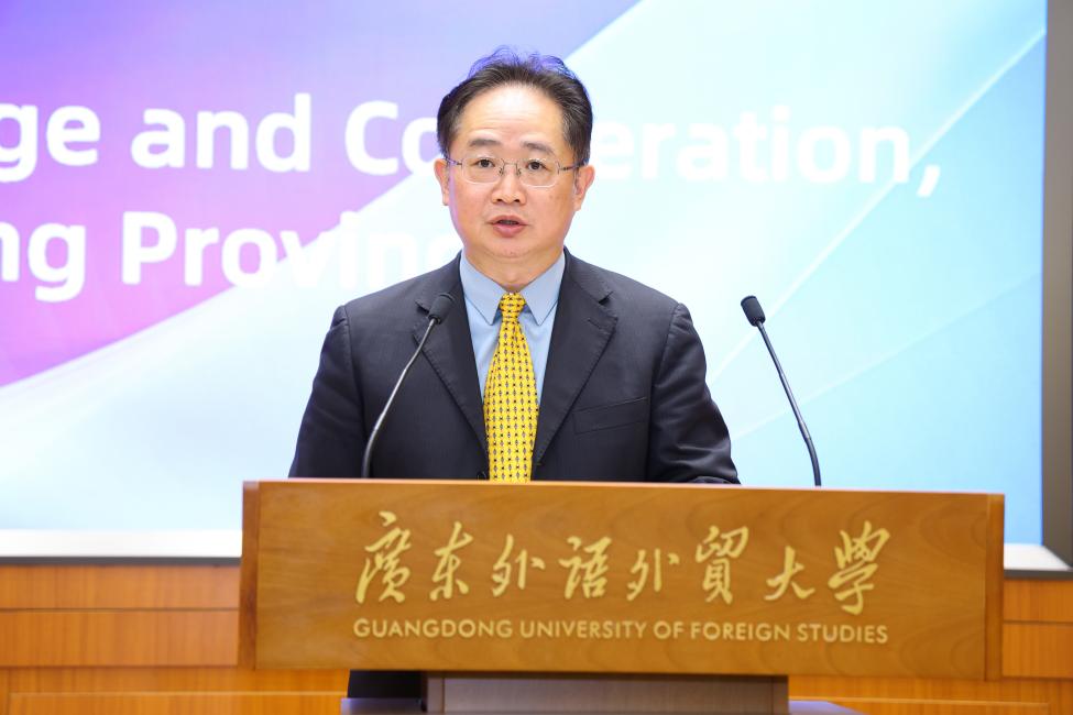 李金俊表示,教育是應對當今世界多變復雜形勢的重要力量,教育國際化更是在推動時代進步、培養具有全球視野人才方面發揮著至關重要的影響力。中國政府歷來重視和支持教育對外開放工作,我省高校始終堅持“引進來”和“走出去”相結合的理念,推出一系列政策措施,旨在加強我省高校與世界一流大學和學術機構的交流和合作,引進優質教育資源,并積極對外提供廣東特色的教育解決方案。廣東外語外貿大學作為我省高水平大學重點建設高校,在教育國際化方面取得了顯著的成績,對推進我省教育國際化發展發揮著顯著的引領示范作用。此次交流周是廣外對國家教育開放政策的積極響應,是為世界教育事業的繁榮發展貢獻廣東智慧和力量的生動實踐典范。他衷心祝愿廣外首屆國際教育交流周取得圓滿成功,期待粵外教育合作不斷取得新的進展、實現新的跨越。