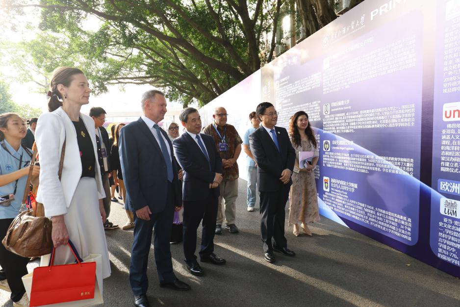 本屆國際教育交流周開幕首日,教育國際化主題學術講壇、世界名校國際交流項目宣講會和世界名校合作洽談會等系列活動在白云山校區和大學城校區有序開展。教育國際化學術講壇精彩啟幕,馬來亞大學馬來研究院院長Dr. Sabzali Musa Kahn等3位學者為我校師生帶來了“東南亞藝術與文化”等3場精彩的學術講座;香港浸會大學傳理學院鐘布教授在大學城校區開展了主題為“慢病癥狀控制中的傳播干預”和“研究思路與機遇:人工智能時代的傳播學研究”專題講座。英國牛津大學、法國雷恩高等商學院、澳門理工大學等世界知名高校通過項目宣講會,向我校學生介紹各類海外交流訪學項目并就有關升學留學進行指導。英國伯明翰大學、法國SKEMA商學院與香港教育大學等高校分別與我校國際學院、商英學院和公管學院等單位開展項目洽談,共同探討人才培養合作的新路徑。