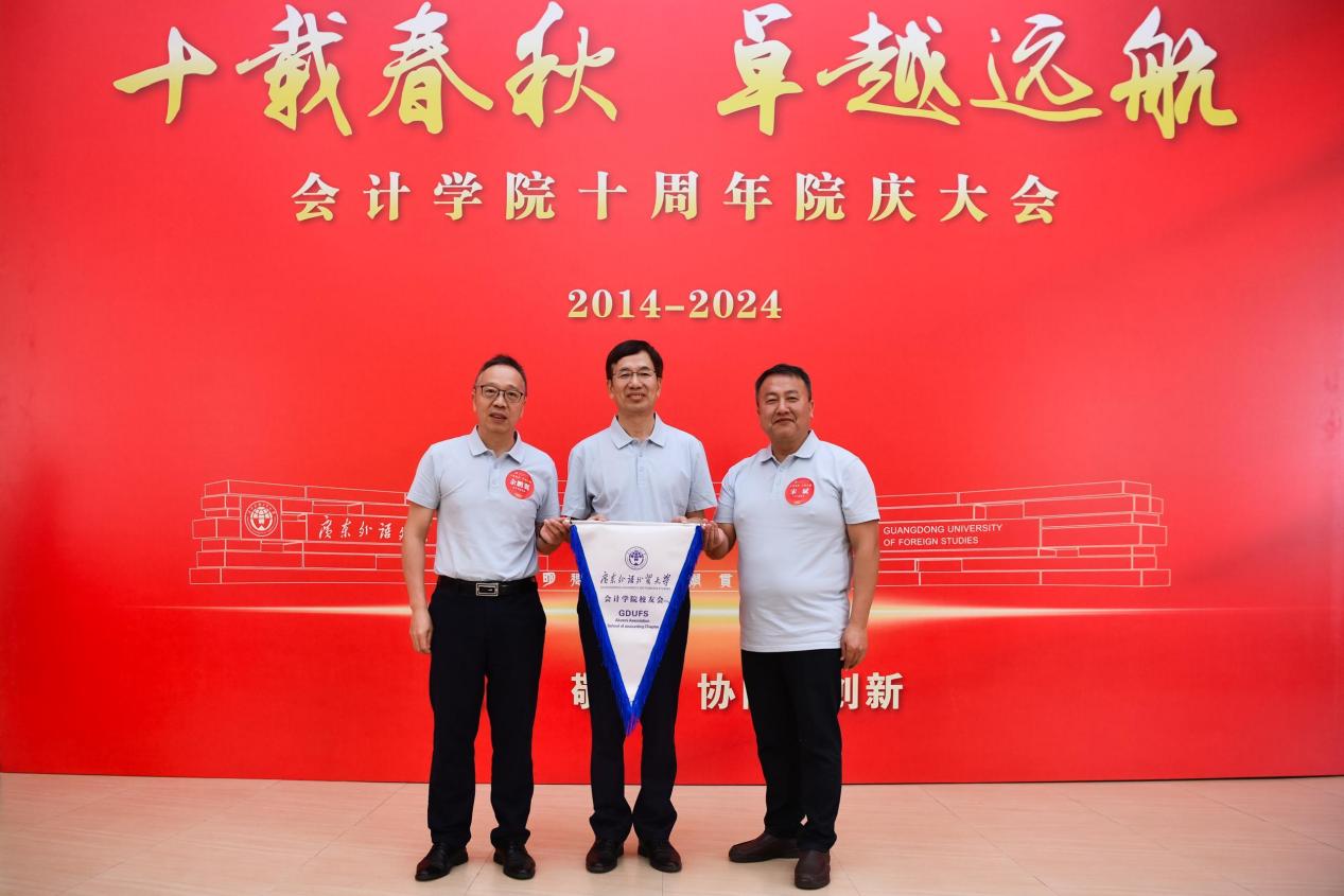 校黨委常委、副校長何傳添向返校校友們表示歡迎,對長期心系母校、關心支持母校建設與發展的廣大校友們致以衷心的感謝,他向校友們介紹了學校在學科建設上取得的新成績,對會計學院成立以來的發展和所取得的成績給予充分的肯定。希望校友們團結一心、共同奮斗,繼續關心支持學校事業發展,凝聚校友力量,整合校友資源,為廣外“沖一流”和高水平大學建設添磚加瓦。隨后,何傳添向第三屆理事會會長余鵬翼、執行會長宋斌移交會旗。