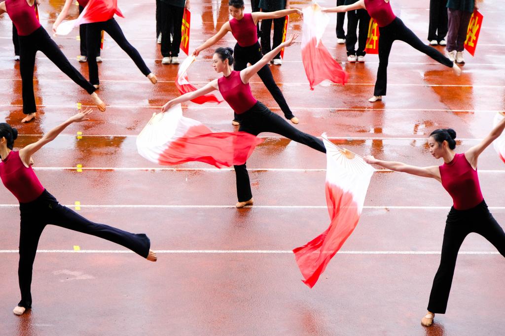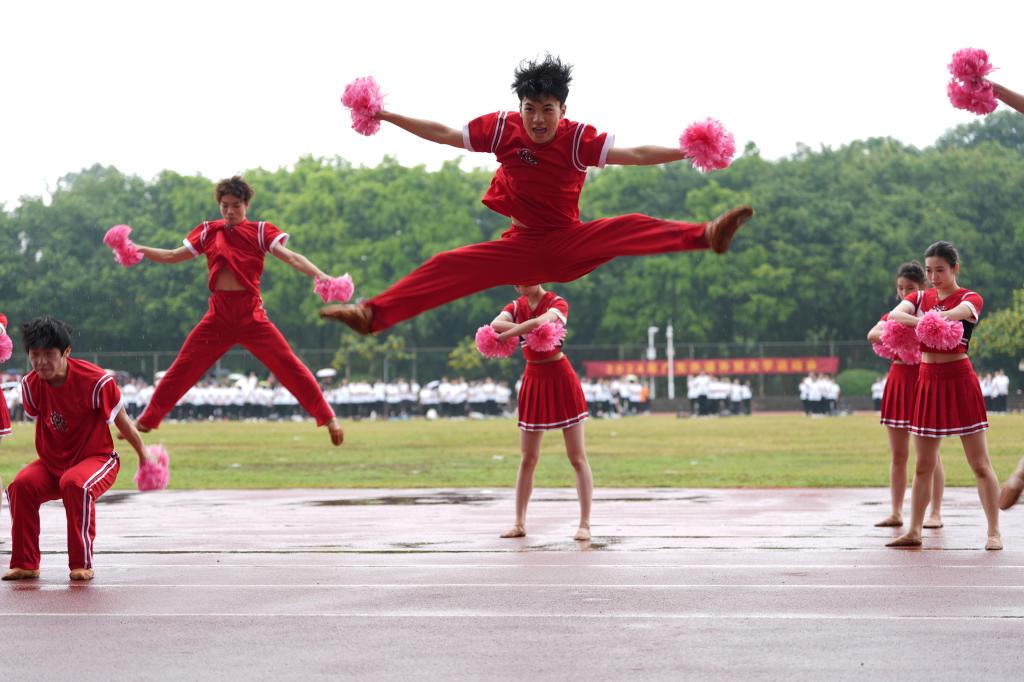 開幕式上,明快的節(jié)奏,靚麗的身影,啦啦操隊隨著音樂起伏旋轉(zhuǎn)、跳躍、空翻、托舉,每一個動作都彰顯著青春熱情。健美操隊在場上活力四射,動作舒展嫻熟,節(jié)拍分明有力,盡顯青春之姿。