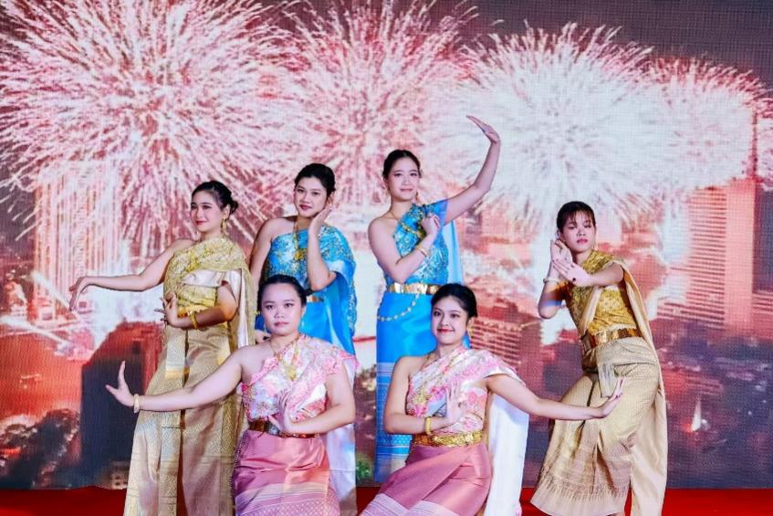 本次開幕式由我校泰語專業中國學生和泰國留學生聯合主持。來自我校東南亞學院、留學生學院以及暨南大學的同學們身著泰國傳統服飾,以優雅的舞姿呈現了一場精彩紛呈的泰國文化藝術表演。