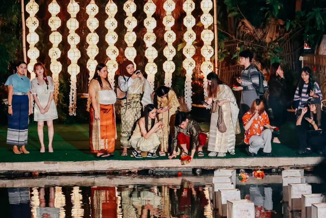 夜幕降臨,活動接近尾聲,水燈小姐隊伍帶領眾人前往漂水燈。一盞盞精美的水燈緩緩漂入水中,大家紛紛許下新年愿望,期待未來的日子里充滿光明與希望。