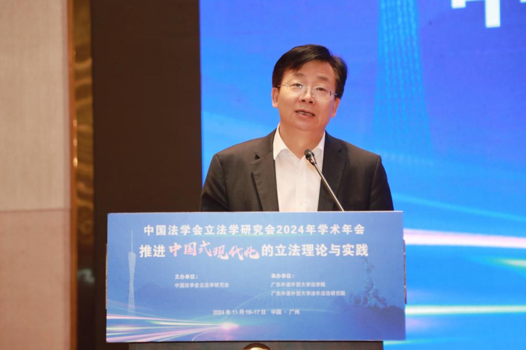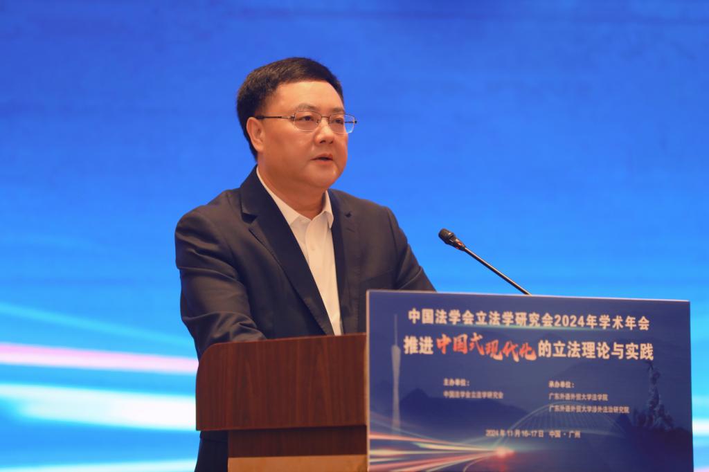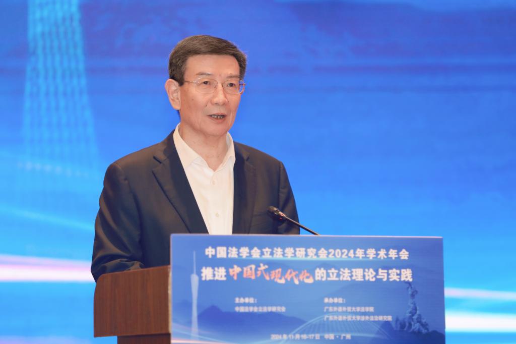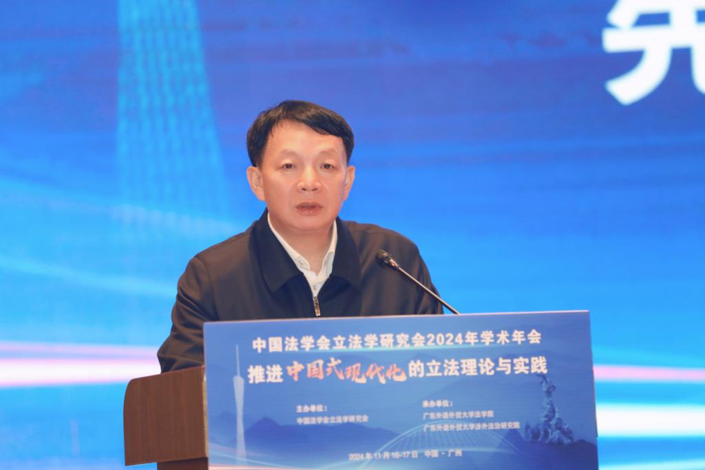 我校黨委書記、教授石佑啟在致辭中指出,黨的二十屆三中全會《決定》對“深化立法領(lǐng)域改革”作出了重要部署。本次年會圍繞“推進中國式現(xiàn)代化的立法理論與實踐”進行主題研討,把握時代脈搏,回應(yīng)現(xiàn)實需要與社會關(guān)切,體現(xiàn)了立法學界的情懷和擔當。廣東外語外貿(mào)大學是華南地區(qū)國際化人才培養(yǎng),以及外國語言文學、全球經(jīng)濟治理、涉外法治研究和中華文化國際傳播等的重要基地。學校緊扣建設(shè)國際化特色鮮明的高水平大學的目標,著力構(gòu)建外語學科和經(jīng)管法等非外語學科“雙輪驅(qū)動、融合發(fā)展”的格局。我校法學學科起步于1996年,目前法學院擁有一級學科博士學位授權(quán)點和博士后科研流動站,今年還獲得了法律博士專業(yè)學位授權(quán)點。承辦這次盛會,是中國法學會立法研究會對廣外的信任、鼓舞和激勵。全校師生將砥礪奮進,繼續(xù)提升辦學成效。