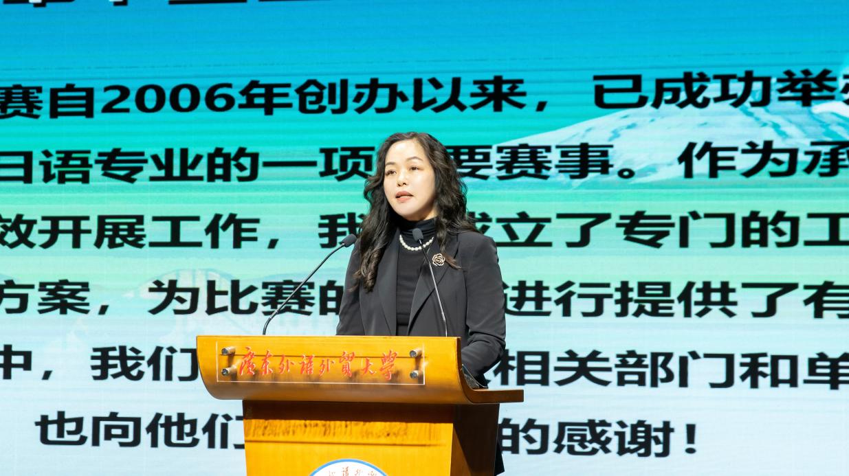 中國教育國際交流協會高等教育合作部主任劉軼博出席活動并致辭。她指出高等教育水平是一個國家發展水平和發展潛力的重要標志,高校是培養人才的搖籃。大賽先后6次被列入中日兩國政府項目清單,三位日本首相曾會見赴日參加總決賽的中國大學生,為促進兩國友好發揮了獨特作用。中華全國日語演講比賽堅持以賽促學、以賽促教,著重考察同學們多維度觀察世界的思辨能力,培養學生具有正確的世界觀、人生觀和價值觀,助力語言專業復合型人才的培養和中國日語教學改革,得到了有關院校和師生的熱烈歡迎和高度評價。