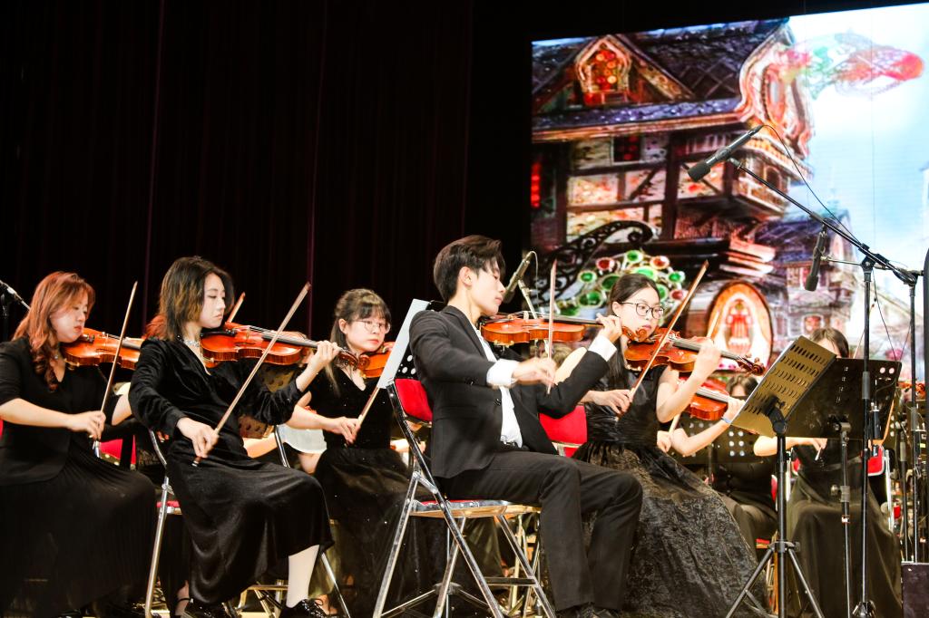 音樂會以《江山如畫》拉開序幕,《四季·春》展現了春天的生機與新年希望。今年是新中國成立75周年,現場恢宏演繹的《我愛你中國》曲目,唱響了廣外師生對偉大祖國的深情告白。