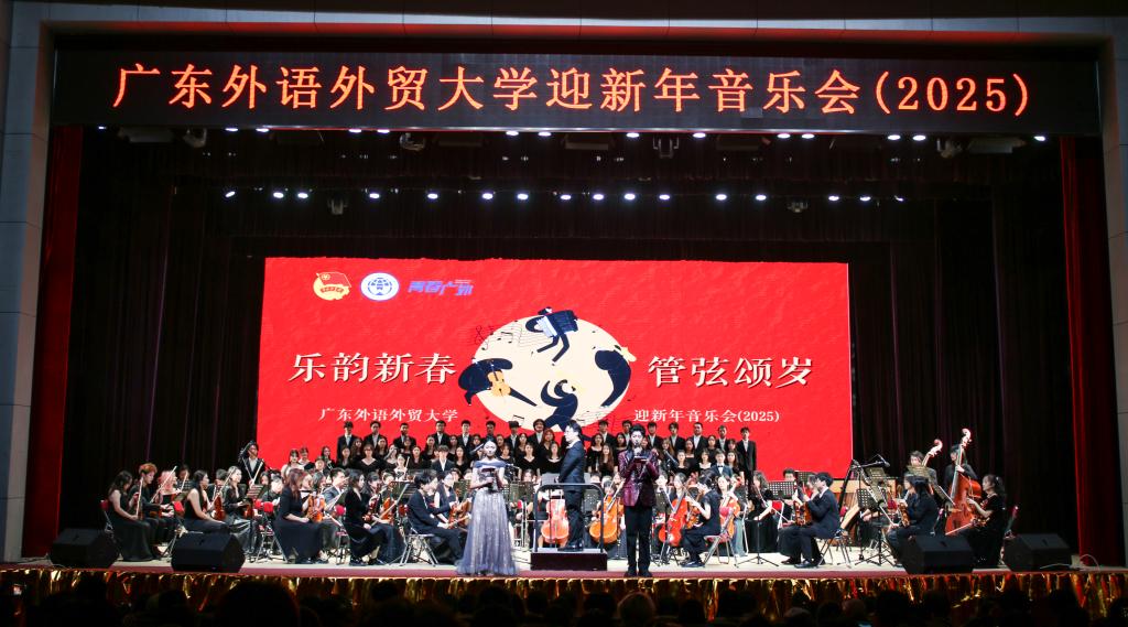 本網訊 12月8日晚,由校團委主辦,校學生藝術團辦公室承辦,校學生管弦樂團、校學生合唱團、藝術學院等學生表演的“樂韻新春,管弦頌歲”廣東外語外貿大學迎新年音樂會(2025)在白云山校區云山會堂內精彩上演。