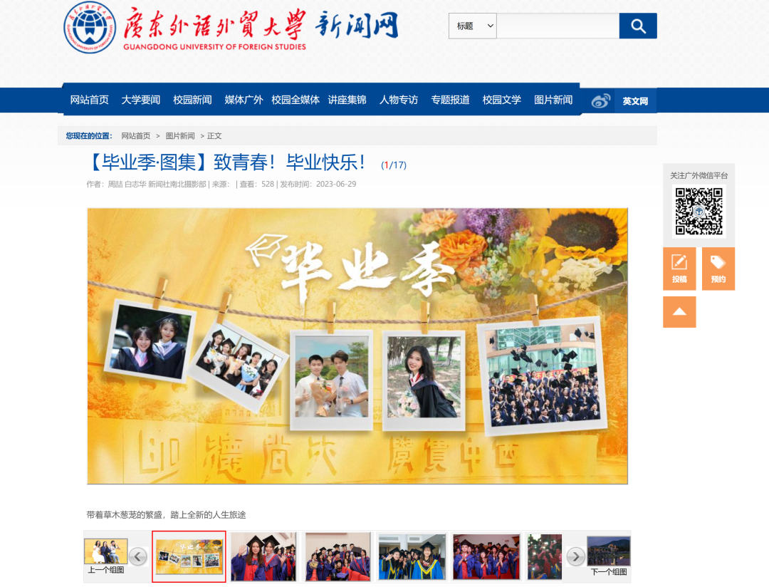 短視頻作品《無上光榮,永久珍藏!廣外獲贈天安門廣場國旗!》激發(fā)廣大師生的愛國主義熱情;《當(dāng)廣外遇上中國紅》登上微博同城熱搜第11位,《在廣外,共享世紀(jì)晚霞的浪漫》第一時間捕捉絕美景致在師生校友朋友圈刷屏;《在廣外遇見世界》《有你在,每分每秒都精彩》《漫步廣外每一次轉(zhuǎn)身回眸都如此陽光明媚》等作品點贊數(shù)、轉(zhuǎn)發(fā)數(shù)總量創(chuàng)近年新高。