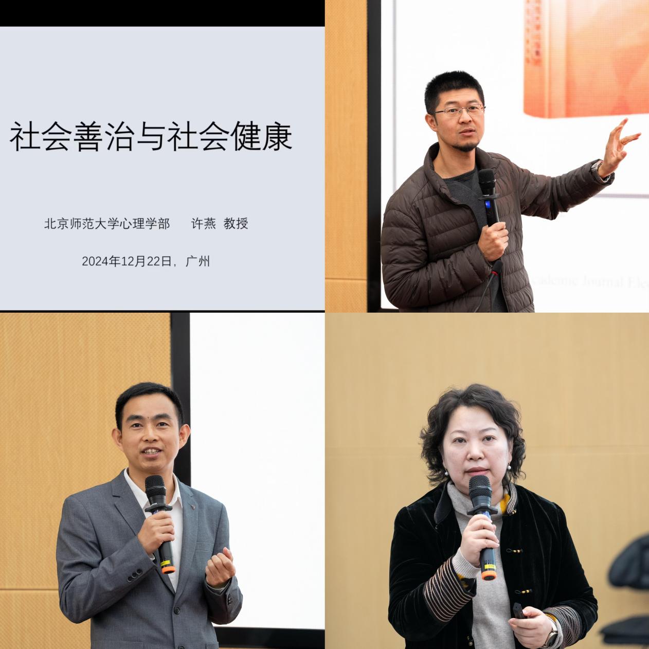 北京師范大學許燕教授、中山大學張書維教授、廣東警官學院楊俊峰教授和武警廣東總隊醫院王曉麗主任醫師通過線上與線下方式分別以《社會善治與社會健康》《從“社會治理心理學”到“行為治理”:公共治理新模式的探索》《社會綜合治理創新的導向、經驗與對策》和《青少年非自殺性自傷行為(NSSI)的發病與維持機制及其應對策略》為題作特邀報告。