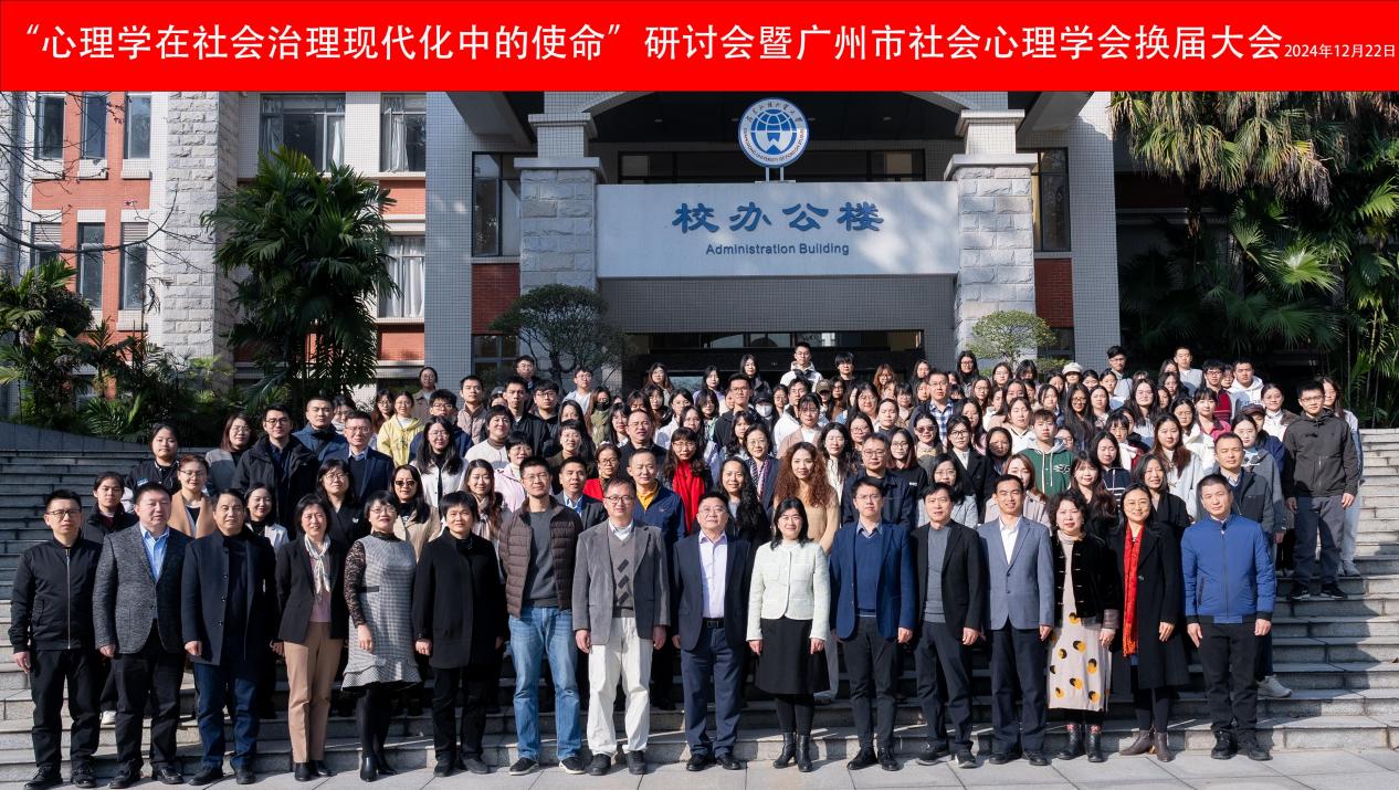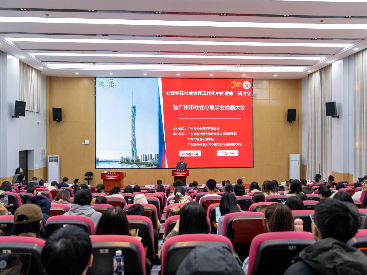 本網訊 為深入學習貫徹黨的二十屆三中全會精神,探討心理學在助推社會治理現代化中的定位與作用,12月22日,由廣州市社會科學界聯合會主辦,廣東外語外貿大學社會與公共管理學院、廣州市社會心理學會、廣東外語外貿大學心理與行為健康研究中心承辦的“心理學在社會治理現代化中的使命”研討會暨廣州市社會心理學會換屆大會在廣東外語外貿大學舉行。來自省內外高校專家學者、政府部門和社會服務機構實務工作者、學生共計200余人參加會議。