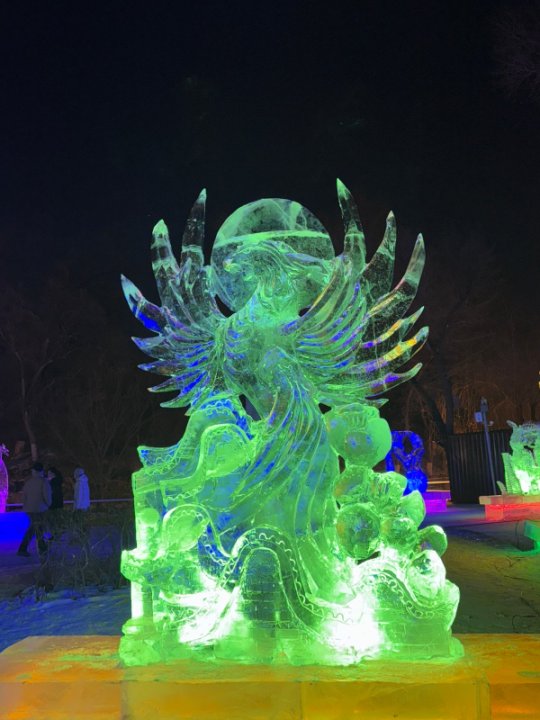 從報名參賽到敲定作品,再到反復的修改與模擬,作為冰雕經驗相對欠缺的隊伍,成員們憑借滿腔熱情與堅定決心,在前期籌備階段付出了諸多努力。尤其在設計稿的創作過程中,為了使作品更具藝術性和可操作性,團隊經歷了無數次的修改和完善。一開始,團隊大膽構思讓鳳凰踩在一個石頭花球之上。可很快,現實就給他們出了難題——復雜精細的鏤雕工藝遠超預期,技術實現難度極大。但團隊成員們并未氣餒,他們迅速一起冷靜研討,通過簡化復雜的結構和細節,讓鳳凰爪子隱于飄逸尾羽之后,最終還保留了文化精髓。此創新巧思不僅成功突破技術瓶頸,更令鳳凰形象鮮活而靈動。