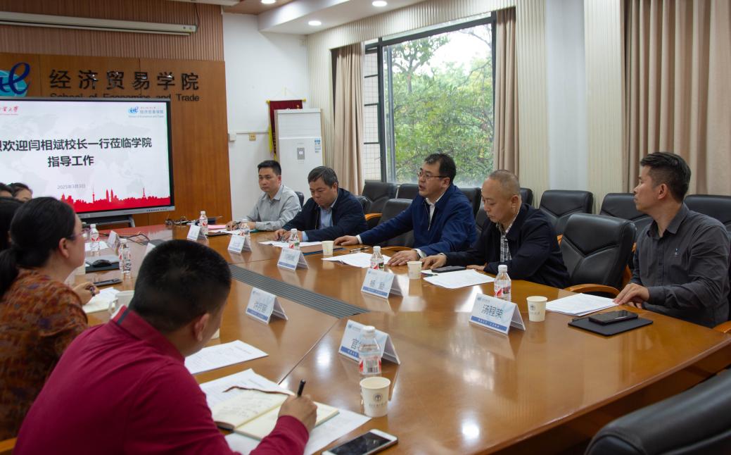 閆相斌一行走訪了大學城校區的經貿學院和教育學院,他強調,要以飽滿的精神狀態抓好新學期各項工作謀劃鋪排和推進落實,以優異成績迎接學校建校60周年。閆相斌指出,要重點抓好“十五五”規劃編制工作,為學院事業發展強化頂層設計。要深化學科交叉融合,構筑學科建設新生態,激活學科發展“內生動力”。要系統提升復合型創新型國際化人才培養質量,持續完善人才培養體系,加快數字化轉型改革。要創新人才工作體制機制,重點加強高水平領軍人才和青年教師隊伍建設,為學校高質量發展夯實人才基礎,共同書寫服務教育強省建設的廣外“新答卷”。