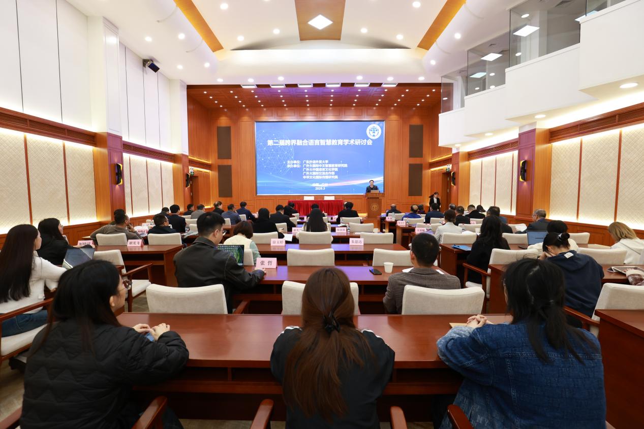 本網訊 3月9日,第二屆跨界融合語言智慧教育研究研討會在廣外白云山校區行政樓國際會議廳召開。廣外黨委書記石佑啟教授、教育部中外語言交流合作中心資深項目主任王峰、國際中文教育基金會副理事長(原北京語言大學校長)劉利教授在開幕式上致辭。香港科技大學(廣州)黨委書記屈哨兵教授等來自語言學及應用語言學、國際中文教育、計算語言學、人工智能等研究領域及產業界的20余位專家作大會報告。