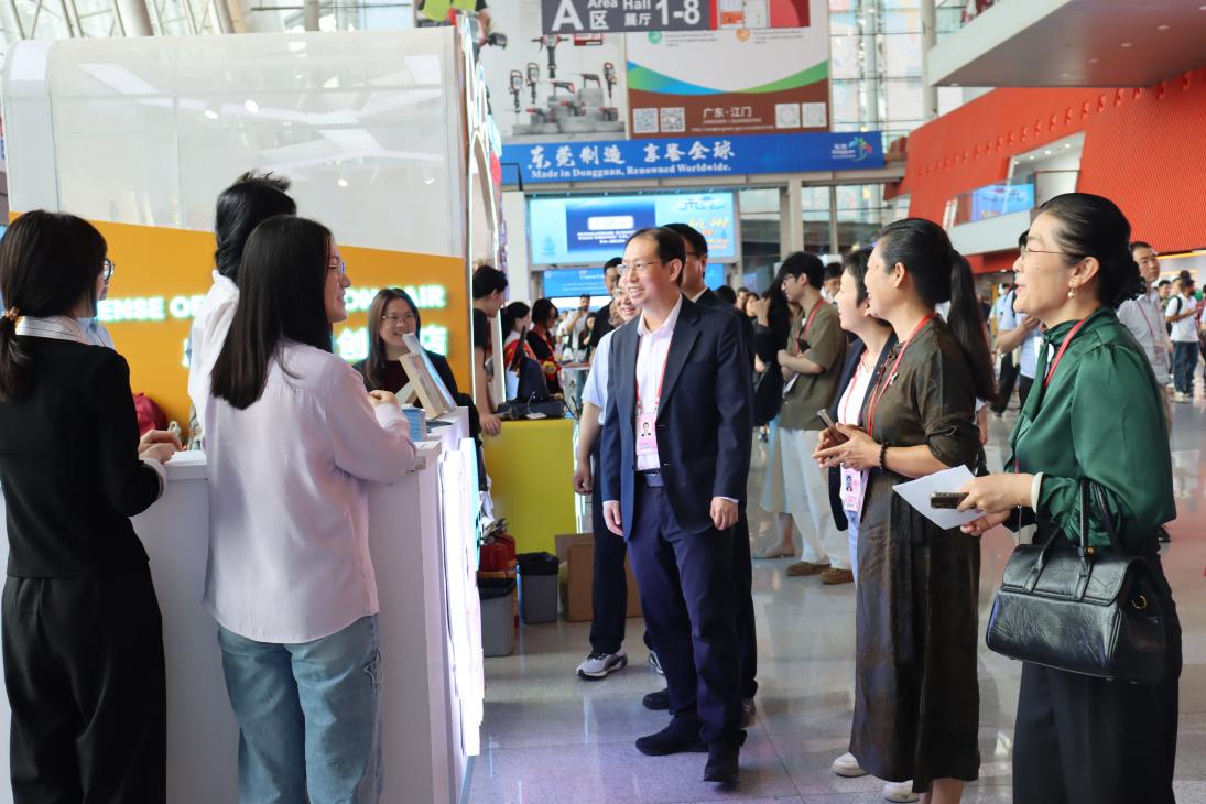 會談后,申明浩一行參觀了廣交會發展史陳列館,并先后來到境外貴賓俱樂部、展館咨詢處、辦證大廳等工作崗位,看望慰問實習學生。期間,申明浩與同學們親切交流,聽取了實習學生參加本屆廣交會實習的感受和收獲,勉勵大家以飽滿的熱情、扎實的知識、專業的能力投入到實習工作中,展現廣外學子良好的精神風貌和綜合素質。申明浩一行也走訪了合作單位廣州市視源電子科技股份有限公司展位,雙方就本屆廣交會參展情況、校企合作等方面開展交流。