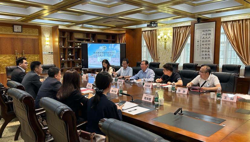 本網訊 4月19日下午,教育部留學服務中心黨委書記、主任王大泉一行到訪我校。雙方圍繞教育國際化相關工作展開交流。校黨委常委、副校長申明浩參加會議。